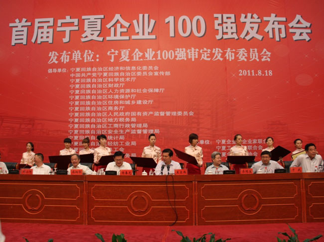 8月18日,首屆寧夏企業(yè)100強發(fā)布大會在寧夏悅海賓館中心會場隆重召開,會議正式發(fā)布了寧夏企業(yè)100強名單,我集團公司榜上有名,位列第48位。