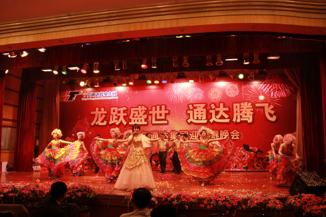會場氣氛熱烈,高潮迭起。烘托出歡度春節(jié)時熱鬧歡騰、喜氣洋洋的氛圍。大家用優(yōu)美的舞蹈、嘹亮的歌聲表達了對通達全體員工的誠摯問候和祝福,更是將員工以集團這個大家庭為榮的自豪感和對新年美好祝福表現(xiàn)得淋漓盡致。 歷時三個小時的晚會在一曲悠揚動聽的《舉杯吧,朋友》的歌舞中落下帷幕。